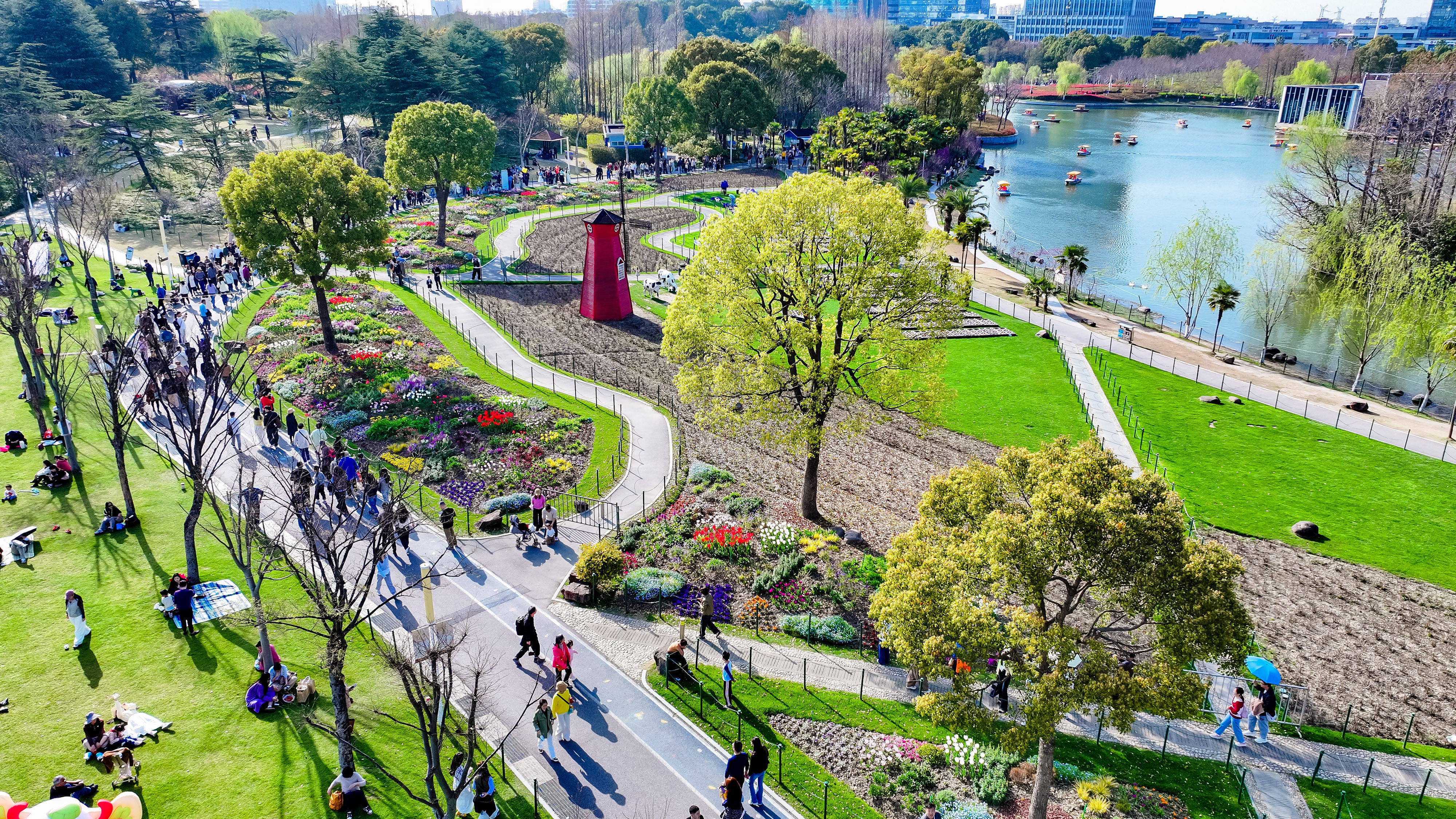 位于上海静安区的大宁公园游人如织。新华社发从“还河于民”到“花开水岸”,从“盘活乡村”到“点花成金”,从“科技赋能”到“玩转花境”……看似各异的春日图景,共享着城市发展理念“以花为媒”“以人为本”的转变。