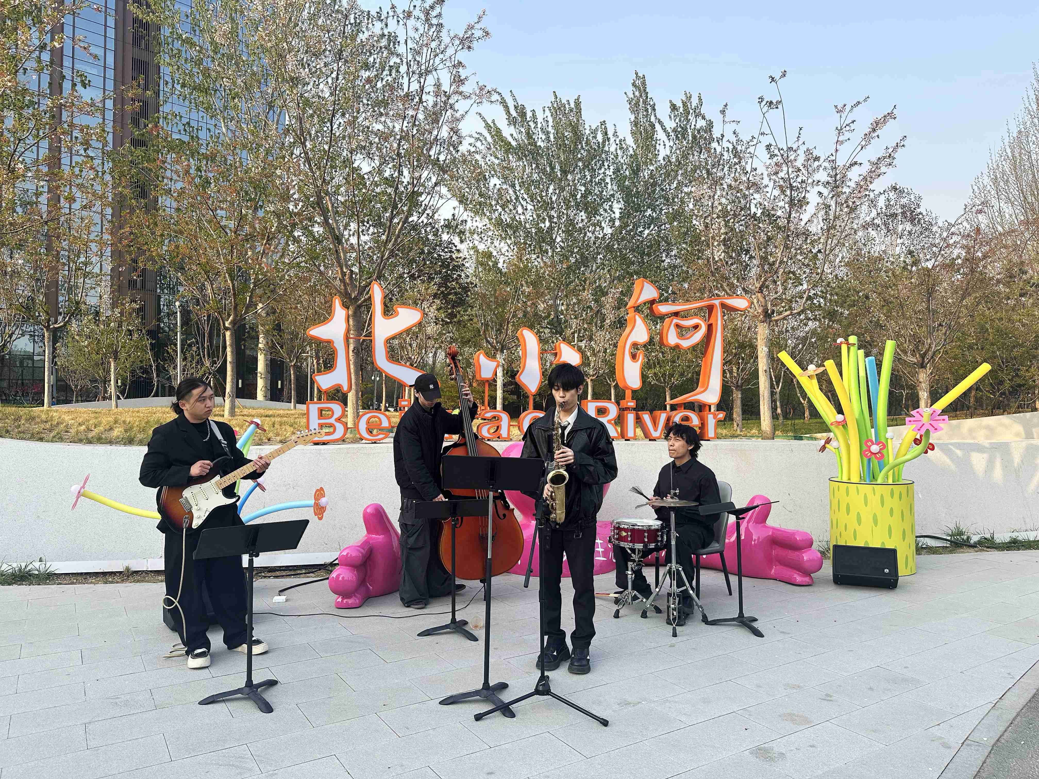 北京北小河岸边的音乐演出。新华社记者 杨淑君 摄“来北京赏花的体验太棒了,从未停止创新的城市,总是让人惊喜。”墨西哥视频博主卡雷拉兴奋地说。