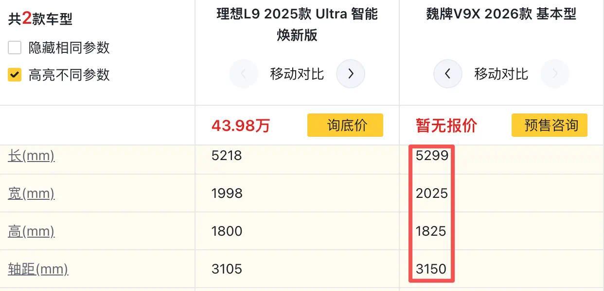 2026年国内高端新能源市场的竞争愈发激烈,"旗舰9字辈"的比拼进入了白热化阶段。魏牌V9X与理想L9 Ultra,两款均定位六座豪华旗舰SUV,价格区间高度重合——一个是蓄势待发的技术旗舰,一个是已经在市场上证明过自己的家庭旗舰。今天我们从五个维度全面对比,看完你心里自然有答案。