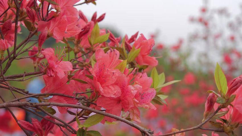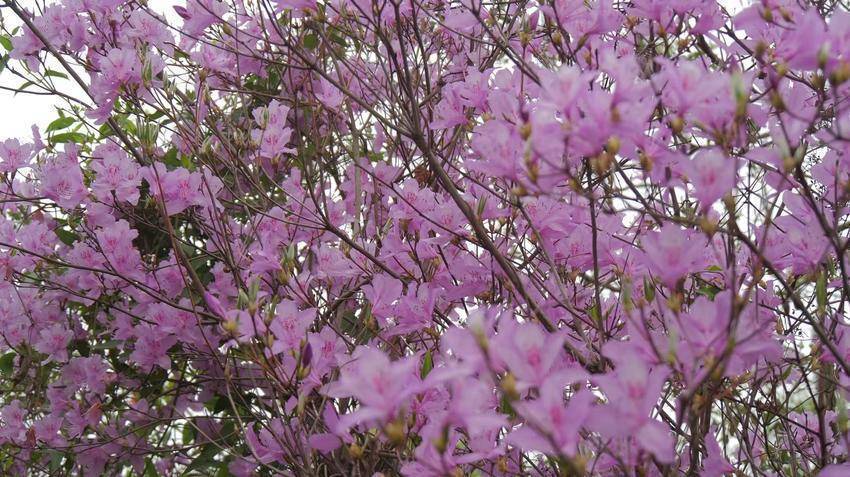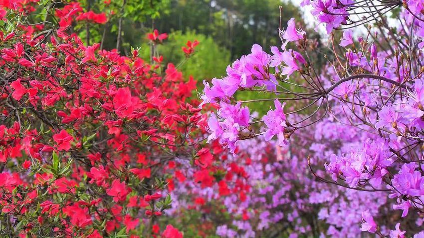 走进荆山杜鹃园,仿佛跌入一片流动的彩霞中。殷红、粉嫩、雪白的杜鹃花,一丛丛、一簇簇,如云似锦,风姿绰约,将春色渲染得淋漓尽致。游客信步花间,用镜头定格瞬间,以歌声回应山风,人与花海,共同沉醉在这无边的春色里。
