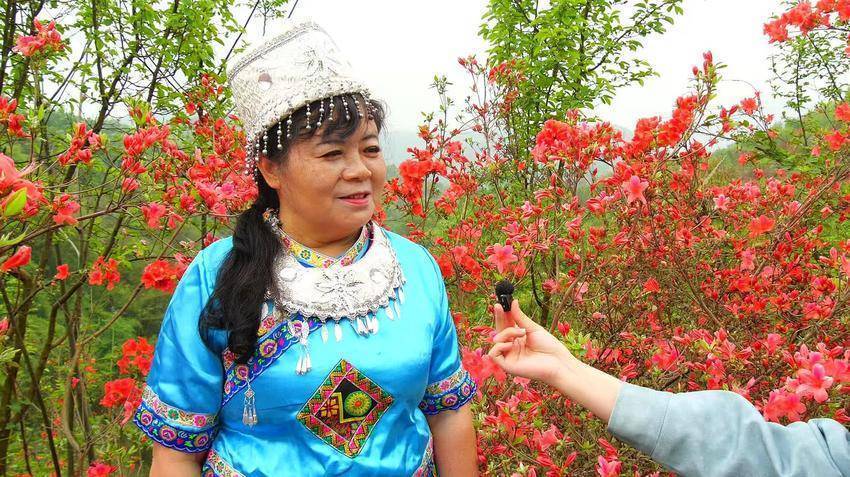 游客蔡丽英说:“这里满山遍野的杜鹃花,让我心旷神怡,流连忘返,而且我今天穿上专门带的服装,就想在花丛中一展歌喉,把这种美好的记忆留下。”